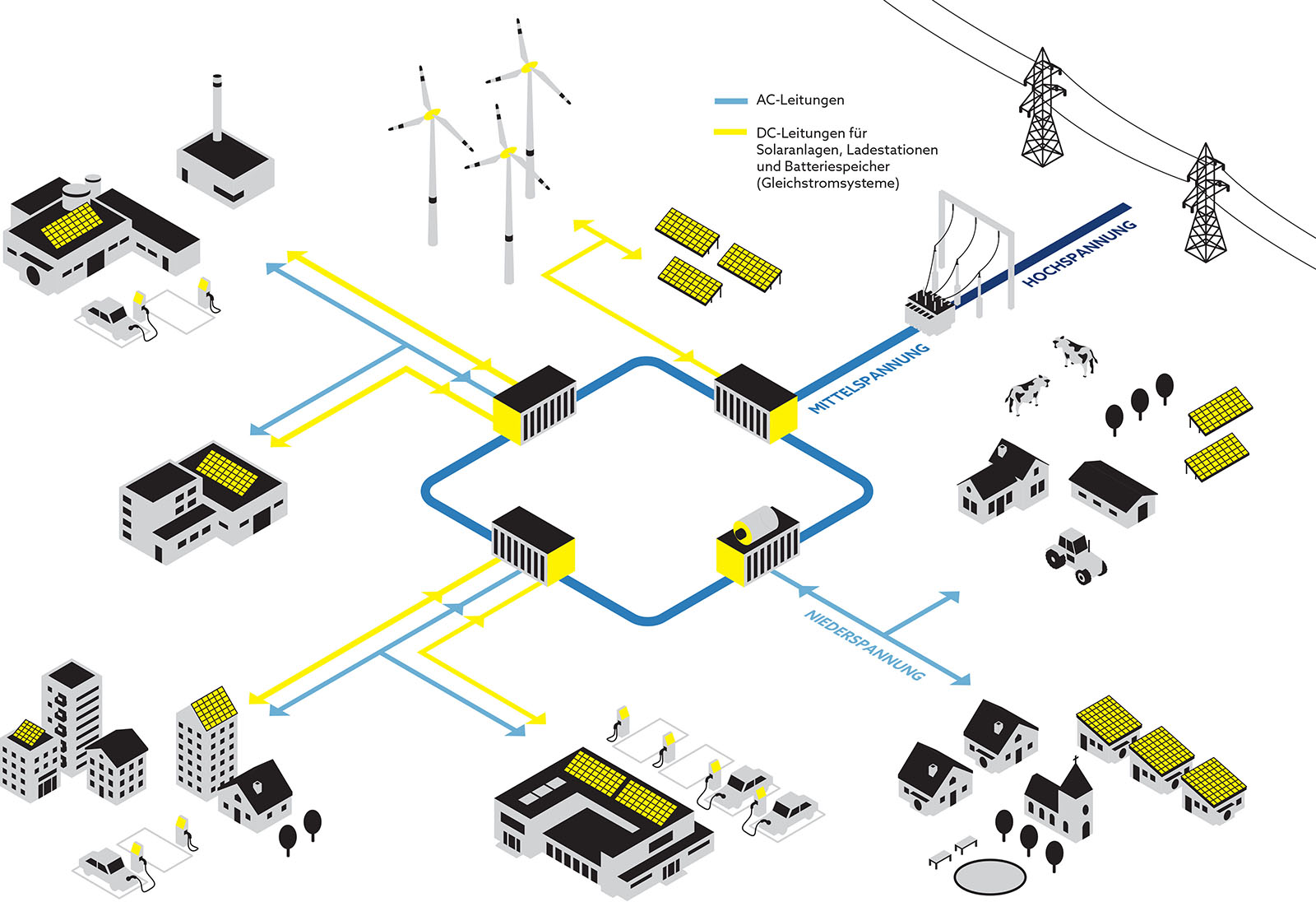 - Direct current at all grid levels